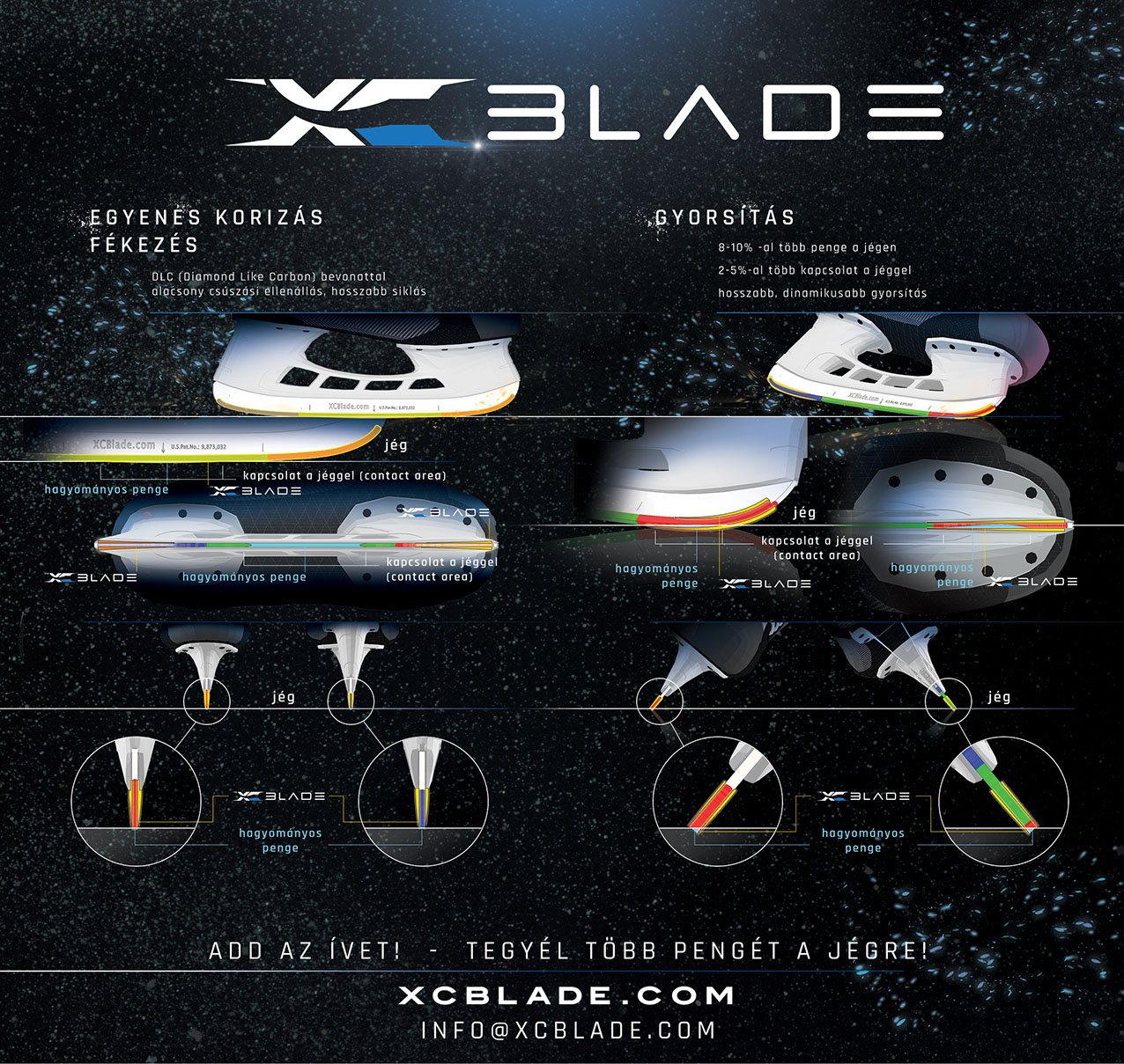 Az XCBlade egy olyan világszabadalmi oltalom alatt álló aszimmetrikus 3D élkiképzésű korcsolyapenge, amelynek a használatával valós előnyt érhetnek el a játékosok, ez a javulás pedig másodpercekben mérhető, ami egy olyan kiélezett sportnál, mint a jégkorong alapvetően meghatározhatja egy-egy mérkőzés, sorozat, de akár bajnokság kimenetelét is.