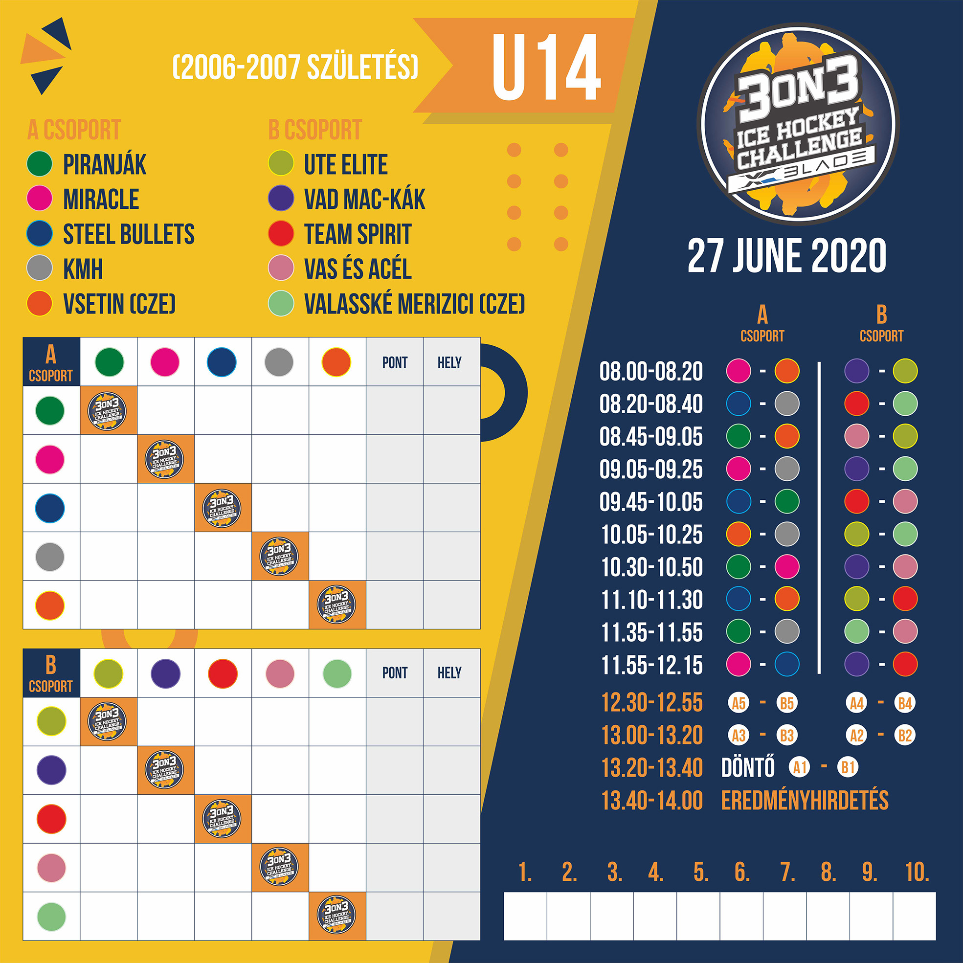 Minden csapat összesen 5, 1x20 perces meccset fog játszani. A sorsolás is elkészült, így az U14-es torna 8-14 óráig, az U16-os pedig 14-20 óráig tart majd, azok, akik szeretnék testközelből, élőben nézni a tornát és a legügyesebb utánpótlás játékosokat, ezekben az időpontokban jöhetnek a Tüskecsarnokba.