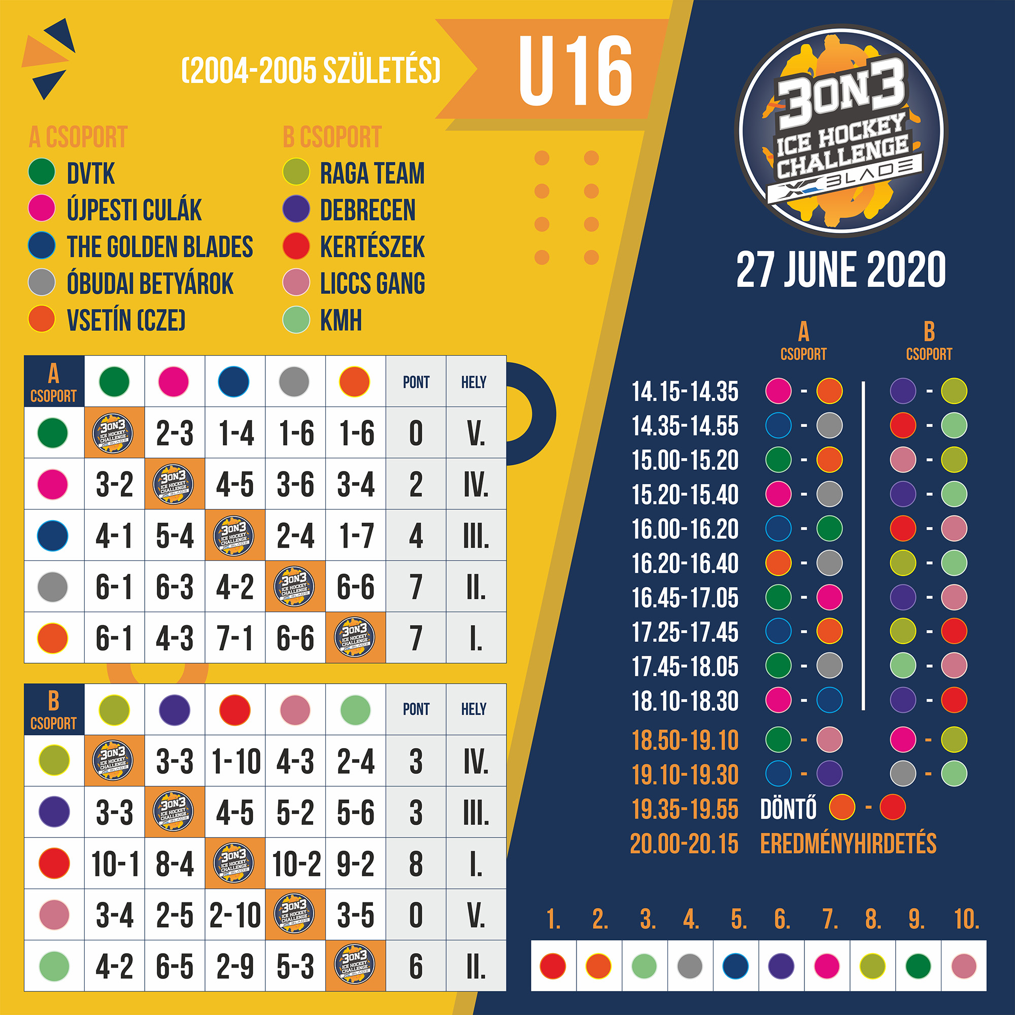 A lenti képen látható a csoportok összes eredménye, a helyosztók pedig így alakultak: