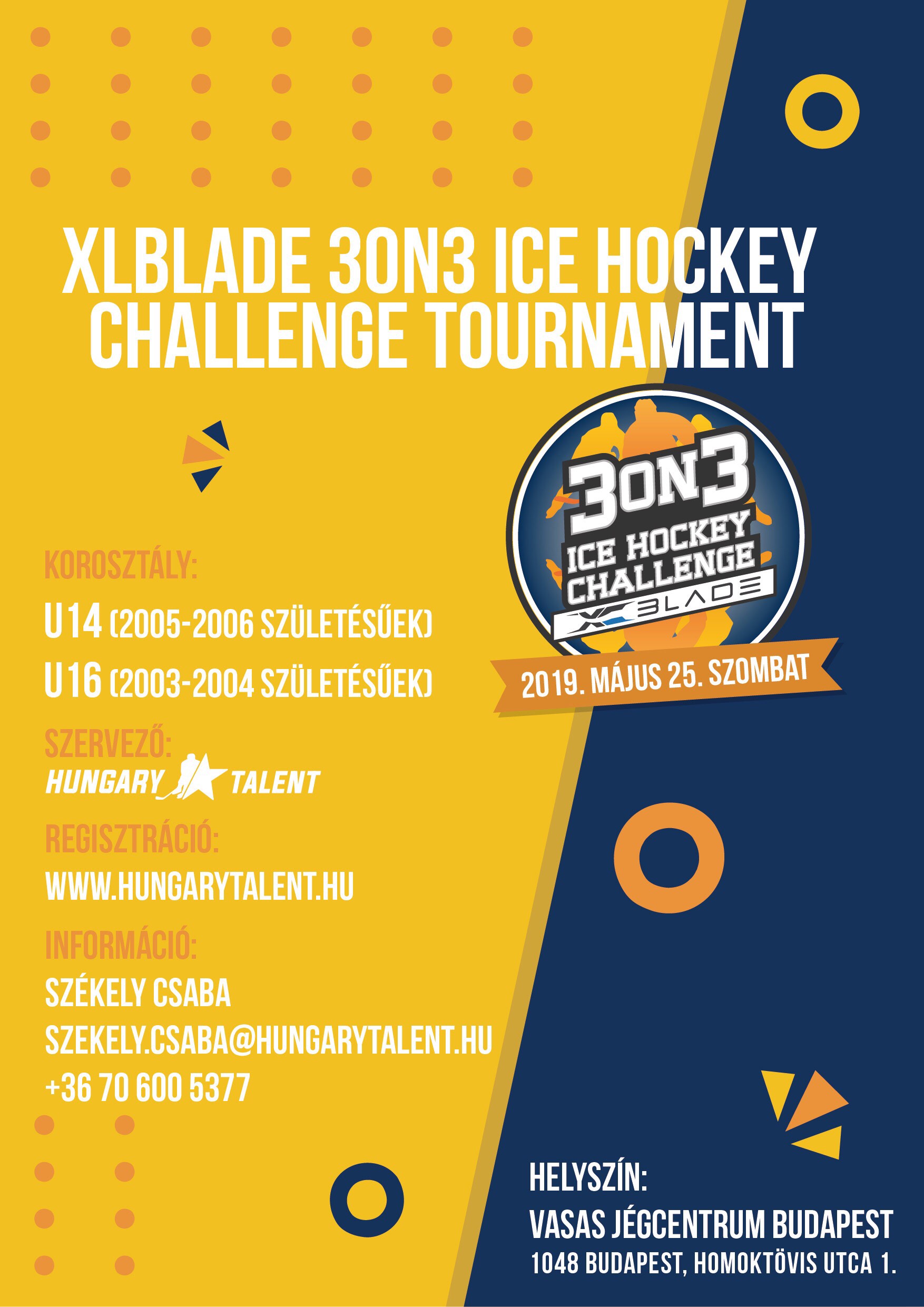 A Hungary Talent 2015-ös indulása óta tervben volt egy egynapos torna az U14-es és U16-os korosztálynak. Ezt a tervet idén sikerül megvalósítanunk, így május 25-én a budapesti Vasas Jégcentrumban elindul a XCBlade 3on3 Icehockey Challenge Tournament.