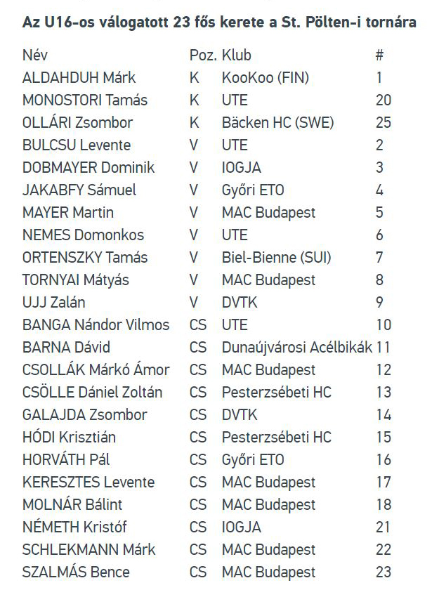 Do maďarskej reprezentácie v kategórii U16 si vybojovali miestenku aj Dávid Barna a Zsombor Galajda. Dokonca aj Gergely Mattyasovszky bol veľmi blízko, ale v poslednom užšom výbere vypadol. Všetci traja hráči sa v lete zúčastnili nášho letného kempu “Europe summer camp” v Námestove a vyzerá to tak, že dokázali vo svoj prospech využiť to, čo sa tam naučili...