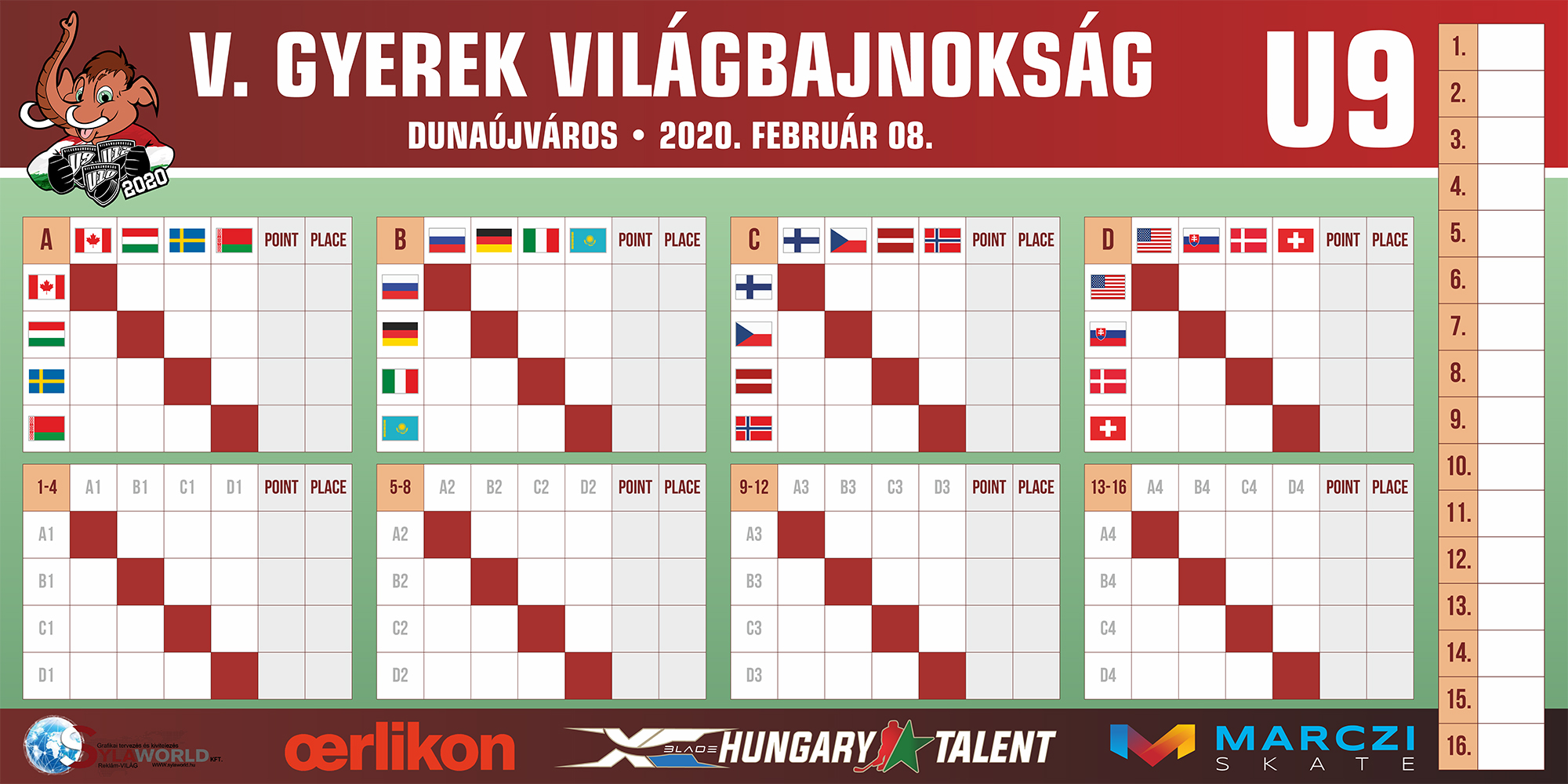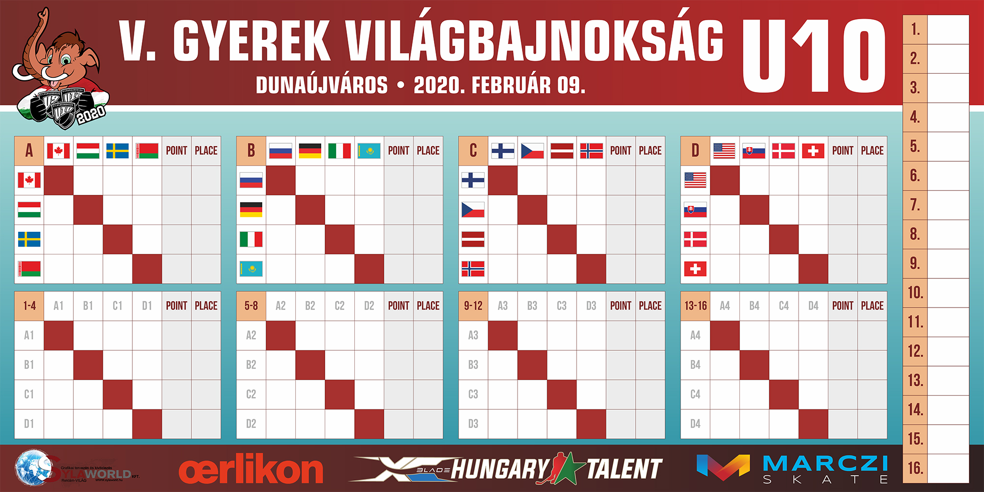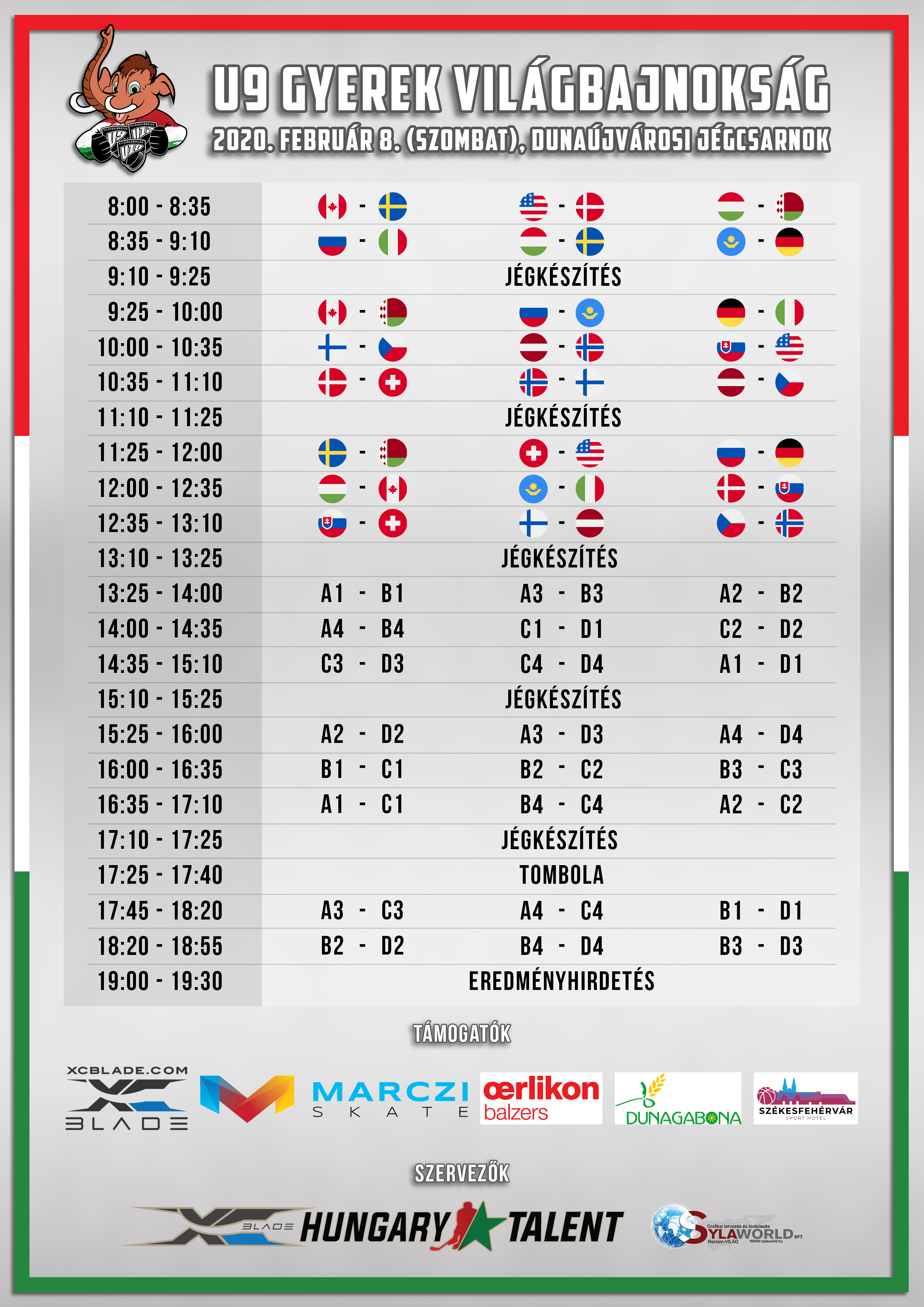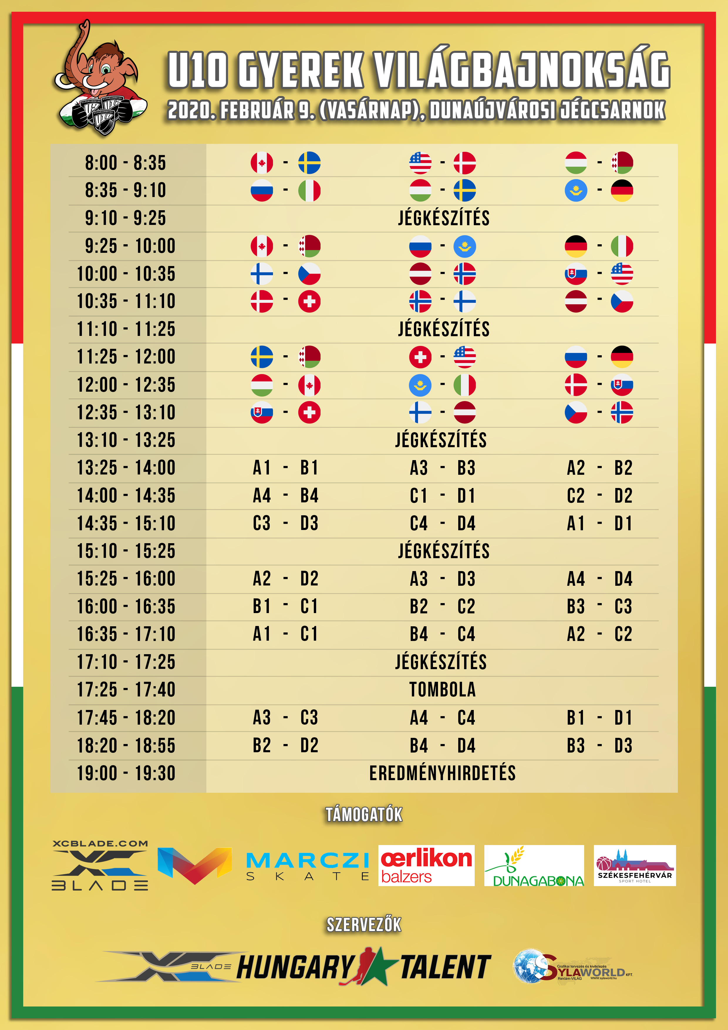 Itt az is fel van tüntetve, hogy ki, mikor kezdi meg a tornát - ez a résztvevők számára fontos, hiszen egy órával a kezdési idő előtt ott kell lenni a Dunaújvárosi Jégcsarnokban, mivel regisztrálnia kell mindenkinek!