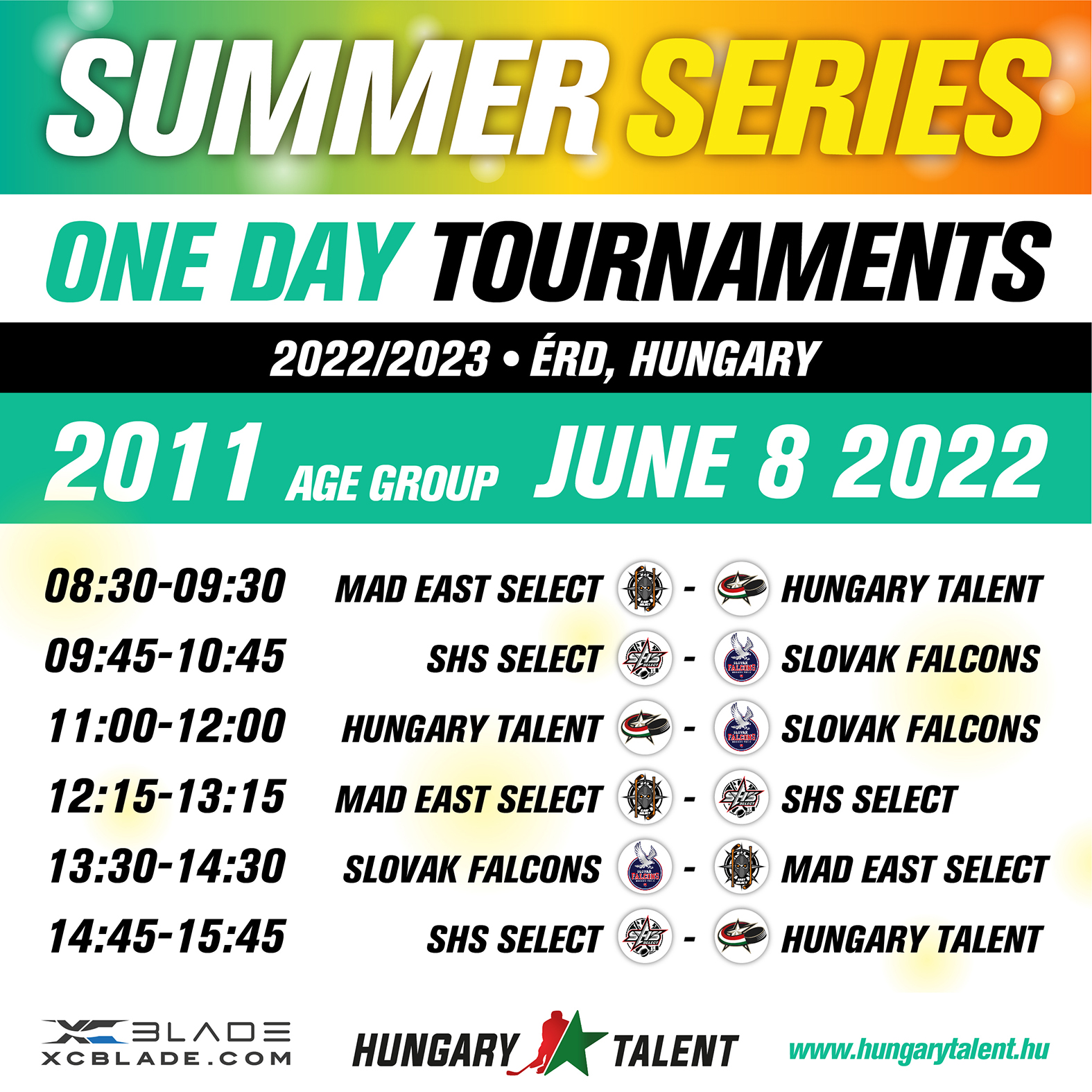 Júniusban két korosztályban, a 2011-esek és 2012-esek számára szervez egynapos tornát Érden a Hungary Talent. Az idősebbek június 8-án, szerdán mérik össze az erejüket cseh és szlovák select csapatokkal, míg a 2012-esek június 9-én csapnak össze szintén szlovák és cseh csapatokkal.