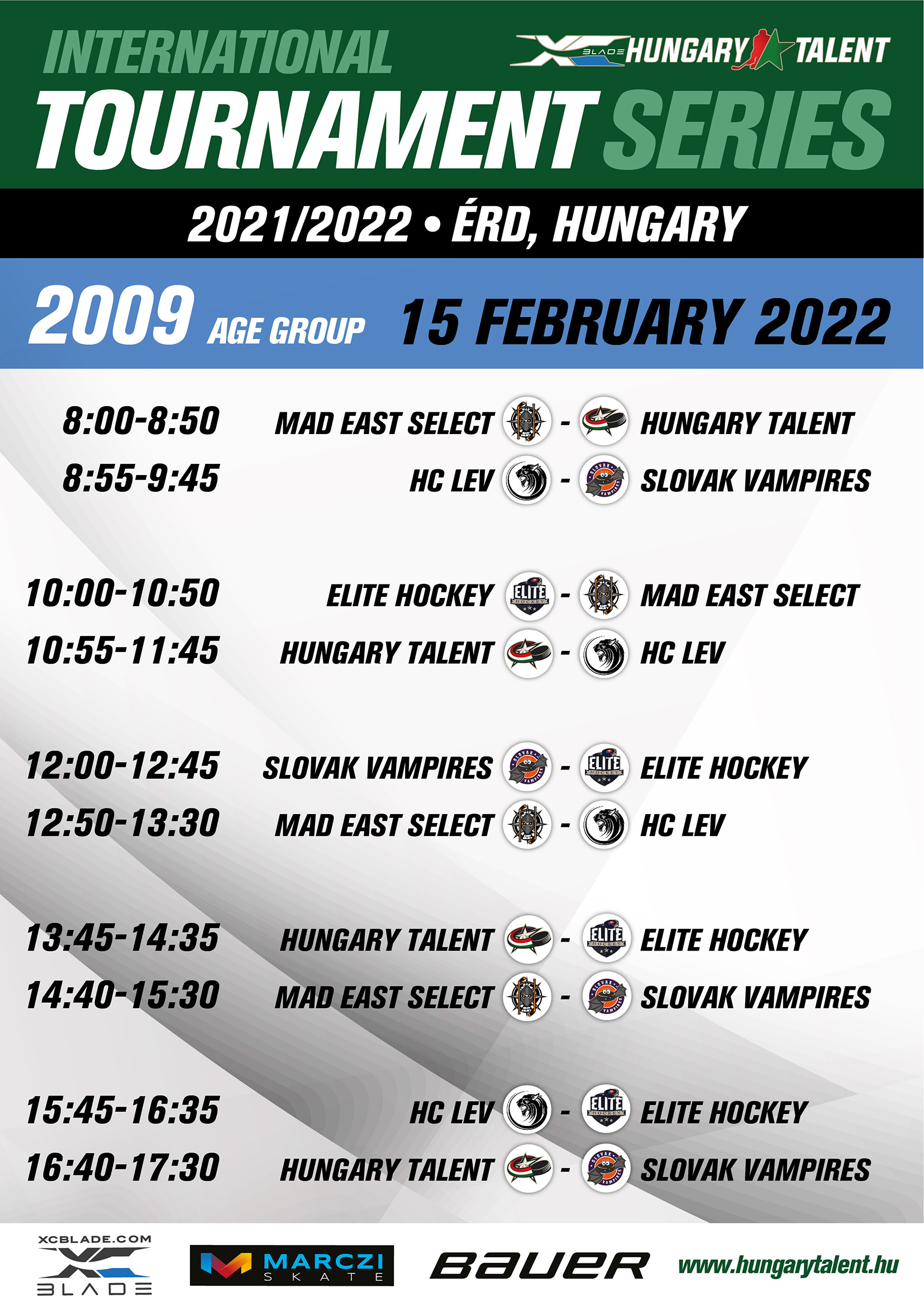 Nagyon örülünk, hogy újra négy szlovák select csapat ellen tudjuk felmérni magunkat - és a legnagyobb rivális Slovak Vampires ellen is játszhatunk. A másik három ellenfél a HC Lev, a MAD East Select és a Slovak Elite lesz.